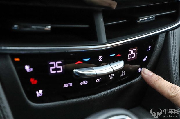 中控显示屏幕两边设置了多个触摸按键,诸如发动机自动启停,雷达,音量调节等功能,而有意思的是在屏幕的右侧“GLOVE BOX"则是用来开启副驾驶正面储物箱的电动开关。以上所说的按键均为虚拟按键,并没有设置按键的力度回馈。而下方的空调控制区域的按键,则为物理按键。除了双区空调的控制之外,还能够调节主副驾驶的座椅加热以及座椅通风功能,此外,座椅加热与座椅通风设置了三个不同的档位以调节不同程度的加热/通风。