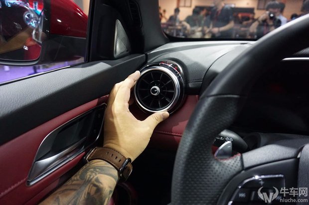 涡轮型的空调出风口非常精致,镀铬装饰的做工也非常出色,这种造型对于运动感氛围的营造还是挺有效果的。