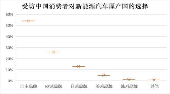 三、J.D.Power调查显示,超过一半的消费者(54%)倾向于购买自主品牌新能源汽车,随后分别是欧系品牌(26%)、日系品牌(13%)、美系品牌(5%)和韩系品牌(1%)。中国消费者对自主品牌的热情可见一斑。