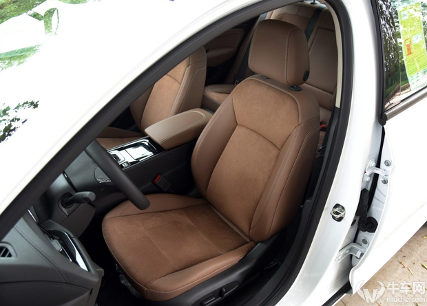 君威前排座椅采用的皮质座椅质感相当不错,不论皮质表面还是内部填充物的柔软度都很高,这也是美系车一直以来的优势所在。座椅整体造型十分宽大,虽然包裹性表现一般,但是于身体的贴合度很高,舒适性不错,而且主副驾驶位皆为电动调节。另外就是君威车内的横向空间表现优秀,当然这也的得益于1461的车身宽度。
