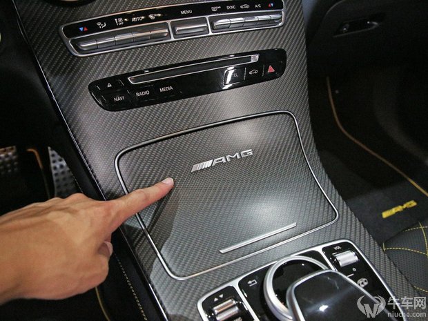 图:AMG运动版内饰与普通版只在中控面板的纹理上有所区分,普通版的木纹饰板到了AMG版理所当然会改变成碳纤维纹路,简单的改下纹理,换来的却是整个氛围的质变。