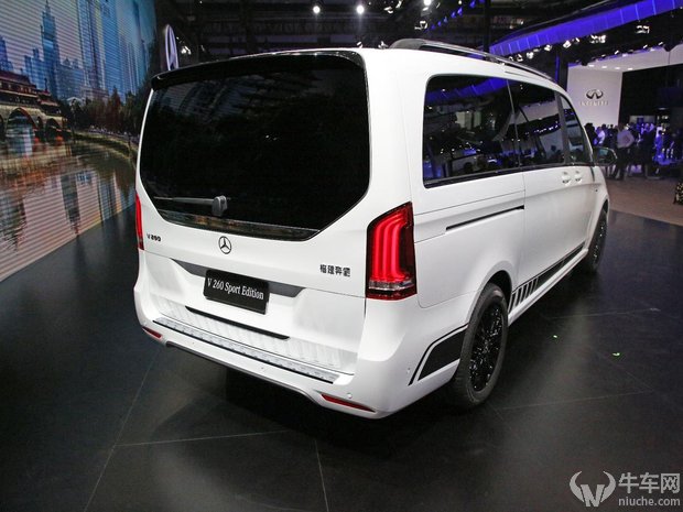 外观方面V260运动套件版采用白色车身配AMG拉花设计,轮圈采用熏黑处理,尾部设计与普通版保持一致,值得一说的是尾部上方带有黑色扰流板,黑白撞色的设计也突出了AMG的运动属性。