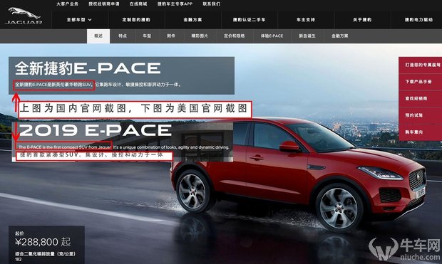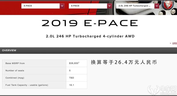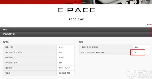 先看广告:全新捷豹E-PACE是新英伦豪华轿跑SUV。它集跑车设计、敏捷操控和澎湃动力于一体。这样的广告词,配上动感的广告图,看的人热血沸腾。而国外网站仅仅简单写明“捷豹首款紧凑型SUV”。当笔者点开规格一栏,看到了百公里加速的数字彻底凉了。再看疗效: