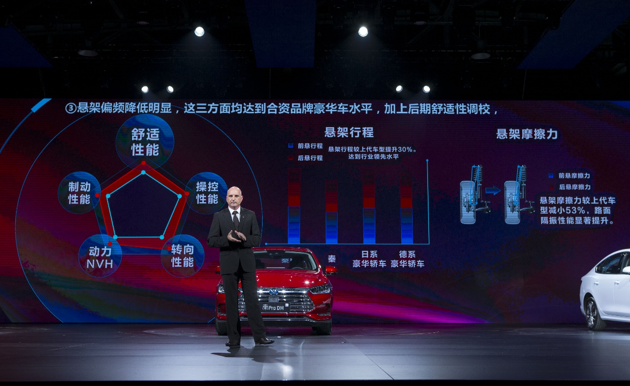针对燃油、DM及EV车型不同的配重,由汉斯领衔的比亚迪国际化造车团队分别调校出相匹配的悬挂特性,以满足消费者兼顾操控与舒适的驾乘诉求。