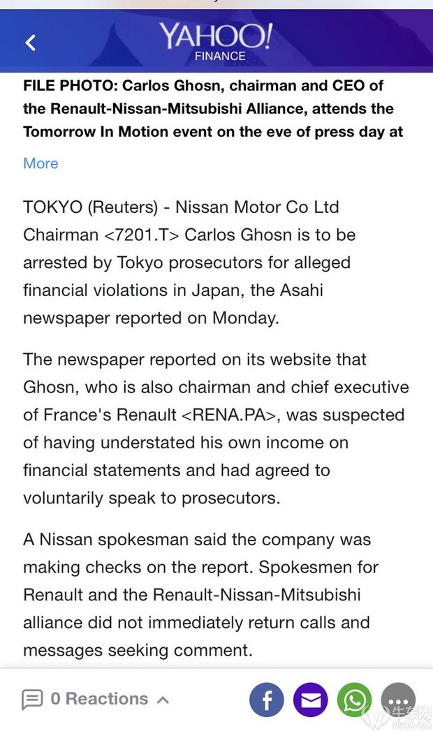 突发:雷诺日产主席兼CEO卡洛斯·戈恩被日本地方检察厅逮捕