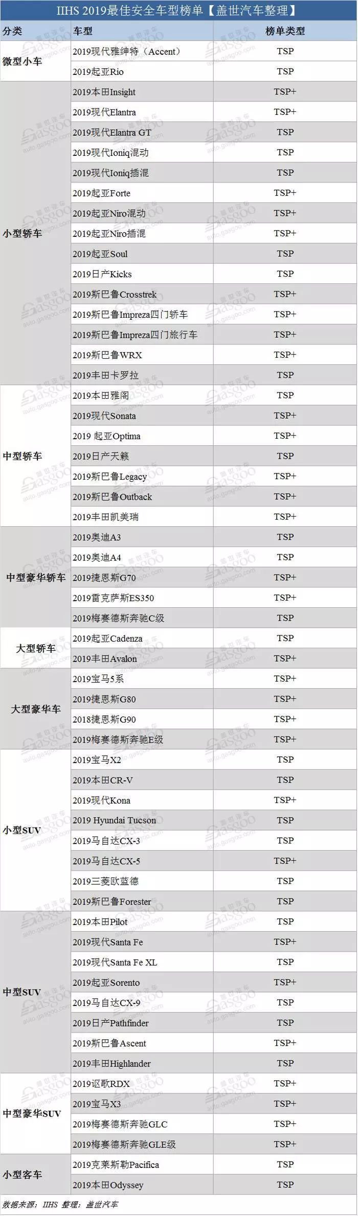 近日,美国公路安全保险协会(IIHS)公布了2019年最佳安全车型榜,今年共有57款车型获得“最高安全评价”,比去年少了5款。不过,这57款车型中有30款获得了“最高安全评价+”这一更高评价。