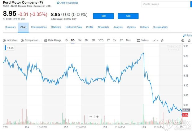 昨日,美国第二大汽车制造商福特汽车股价收跌3.35%,收报8.95美元,为2012年8月以来首次跌破9美元。今年以来累计跌幅接近30%。