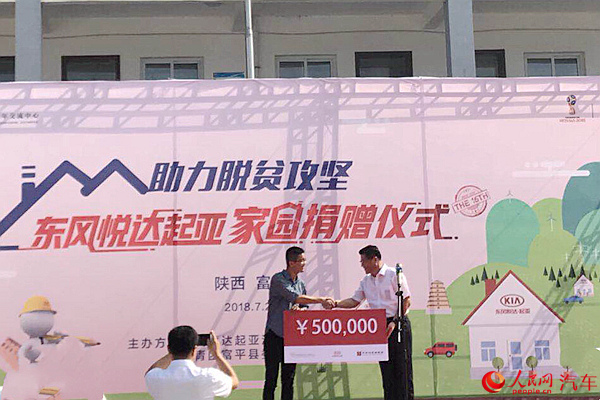 7月26日,2018“东风悦达起亚家园”捐赠仪式在陕西省渭南市富平县举行,捐赠50万元。同时,在为期10天的东风悦达起亚家园”中,东风悦达起亚为当地4户贫困家庭进行了房屋援建,并为当地的希望小学粉刷围墙、铺设草坪、安装书柜。
