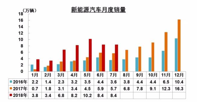 中国财富网讯(周青)8月10日,中国汽车工业协会发布了2018年7月份汽车产销数据。其中新能源汽车方面,7月份产销量分别为9万辆和8.4万辆,同比增长53.6%和47.7%。
