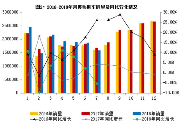 2018年7月,汽车产销环比和同比均略有下降。1-7月,汽车产销同比均呈增长趋势。