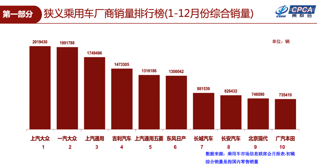 1月9日,全国乘用车市场信息联席会(以下简称“乘联会”)公布2018年12月及全年乘用车产销数据。