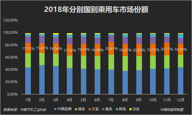 在2018年内,增长较明显的德系和日系,其市场份额也经历了起伏,但总体保持了向上的趋势。