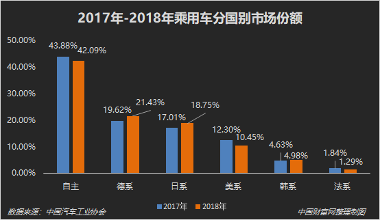 综观2018年国内乘用车企业销量及市场份额的变化,按品牌国别来看,德系与日系品牌实现逆势上扬,并对自主品牌形成挤压;韩系也出现小幅增长;美系、法系则大幅下降。