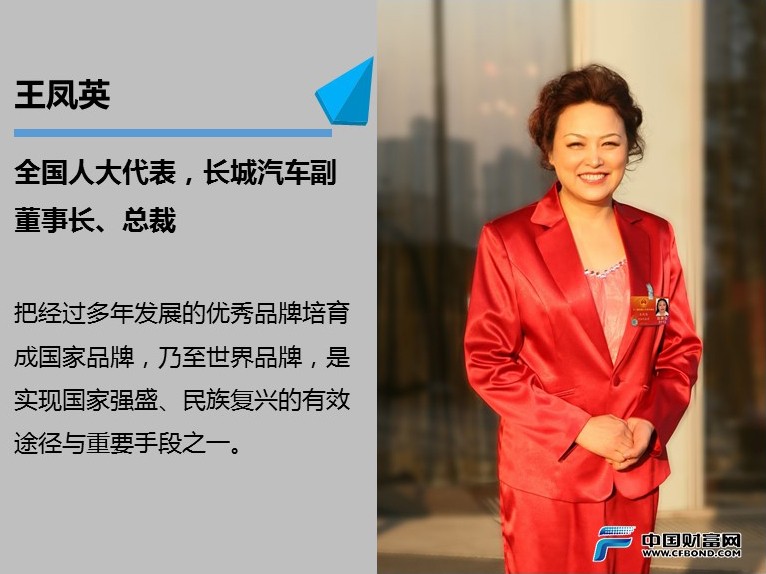 今年全国两会期间,全国人大代表,长城汽车副董事长、总裁王凤英就中国汽车产业未来发展和中国企业发展等问题提出了五项建议。