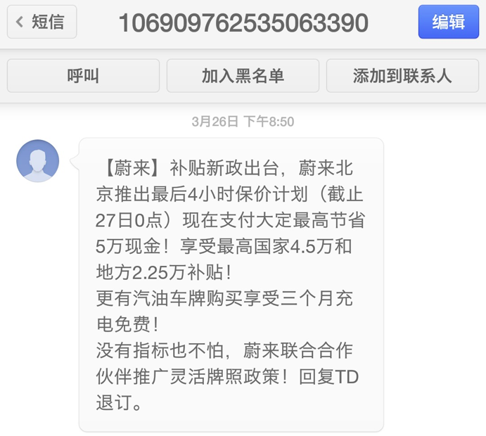 补贴退坡之下,一些新能源汽车品牌借势推出限时促销活动以促进销量,在新政推出仅几个小时后,蔚来汽车便推出了“最后4小时报价计划”——截至27日0点支付大定的消费者,可继续享受4.5万元国家补贴+2.25万元地方补贴,最高可节省5.31万元,汽油车牌还可享受3个月充电免费政策。