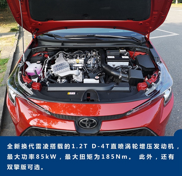 动力方面,全新换代雷凌燃油版车型搭载的是1.2T D-4T直喷涡轮增压发动机,与之匹配的是模拟10速S-CVT变速箱。双擎版车型则搭载丰田最新的THS II混合动力系统,匹配新一代E-CVT电子无级变速箱,百公里综合油耗低至4.1L。