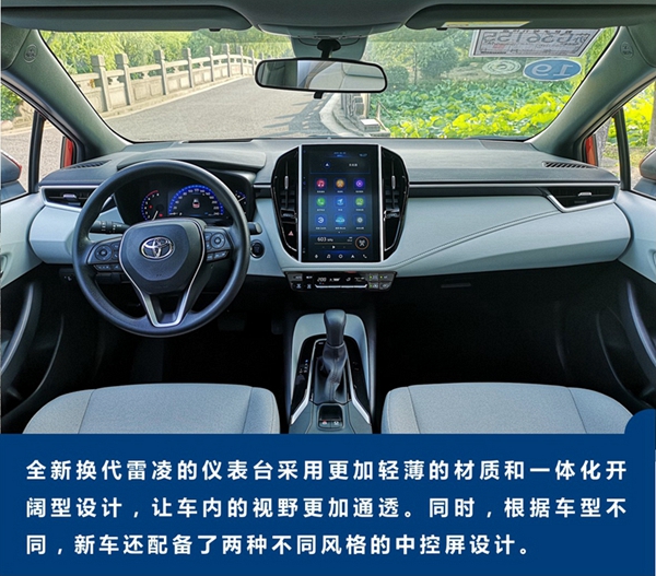 全新换代雷凌的内饰改变了之前中庸的设计风格,采用更加简洁时尚的造型,并且整体布局疏密有致。新车还增加了软塑材质的包裹面积,并运用了更具质感的星空灰配色。