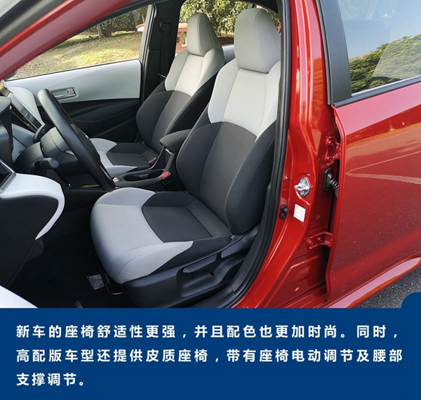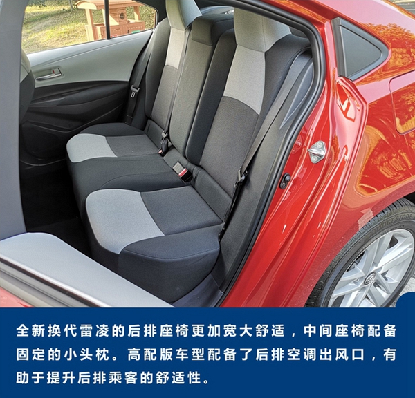 全新换代雷凌的乘坐空间延续了上代车型的优秀表现,并在多方面进行优化,提升舒适体验。比如,采用樱泰最新研发的TNGA架构座椅,首次搭载实时监测PM2.5的空气净化装置等。