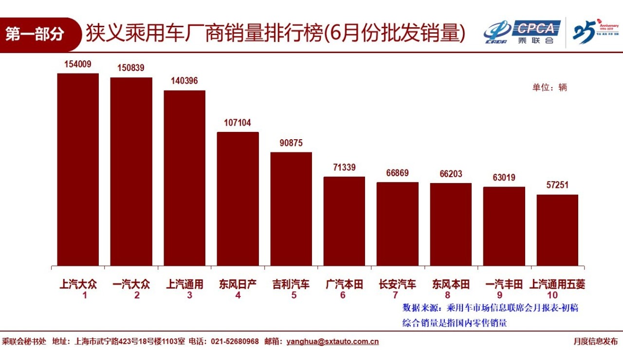 1.2019年6月份全国乘用车市场回顾