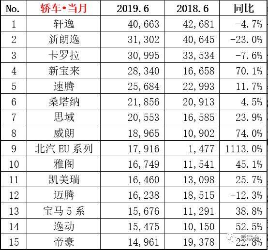 在6月的综合销量排名中,一汽大众一举夺魁,上汽大众和上汽通用分列第二、三位。今年以来,东风日产进步有目共睹,5、6月稳列榜单的第4名;东风本田、华晨宝马、北京现代分别是本月销量增长率的前三名。