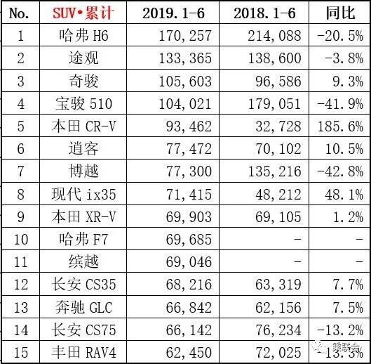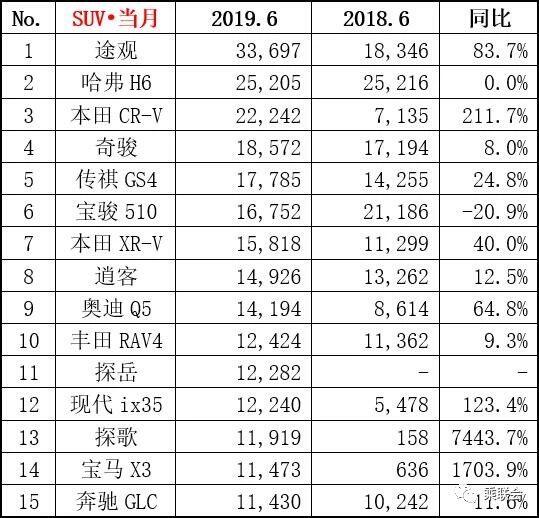 6月份SUV销量76.0万辆,同比增长10.9%,环比增长13.3%;上半年累计销量429.2万辆,同比下降8.4%。