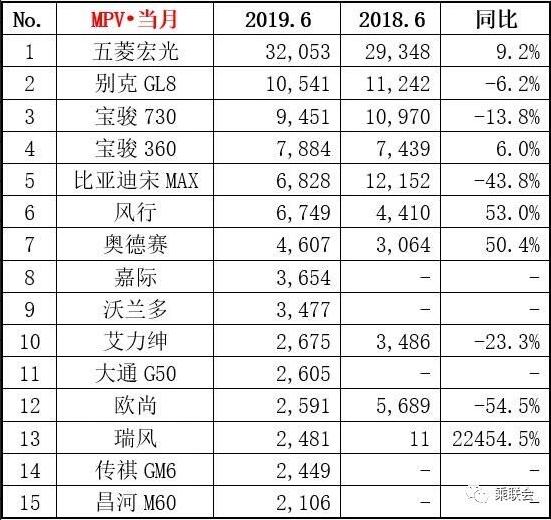 6月份MPV销量12.1万辆,同比下降8.1%,环比增长12.1%;上半年累计销量70.0万辆,同比下降19.4%。