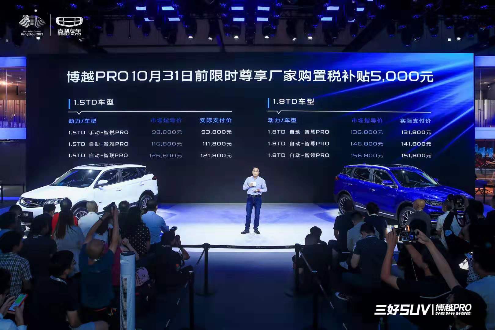 吉利博越家族在成都车展正式上市。其中全新一代博越PRO共推出1.5TD、1.8TD两种排量共计6款车型,官方指导价为9.88-15.68万元。