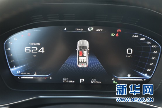平底方向盘大小适中、握感较好,两侧的多功能按键布局合理,阻尼的回馈感也让驾驶者感觉很舒服。前方12.3英寸全液晶仪表风格前卫、显示信息齐全,分辨率高达720P。