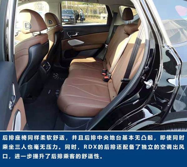 对于一款中型SUV而言,充裕的乘坐空间及丰富的储物空间是必不可少的。RDX在强化这一优势的同时,更加注重乘坐舒适性的营造。试驾车型配备了运动座椅、超大全景天窗、双温区自动空调及16个扬声器组成的3D音响系统。