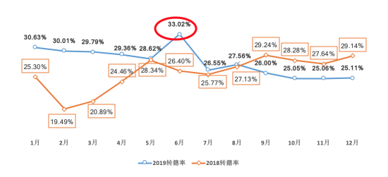 从跨区域流通情况看,去年二手车转籍总量为415.91万辆,转籍比例为27.87%,与去年同期相比增长了1.66个百分点。伴随全国解除二手车限迁政策的推进,从月度转籍比例的走势来看,2019年上半年的转籍比例明显高于历史同期,但从7月份开始,由于部分地区提前实施国五国六切换政策,限迁政策再次抬头,转籍比例呈现下降趋势,并低于历史同期。