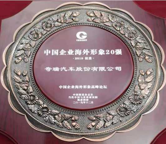 奇瑞第四次获得“中国企业海外形象20强”