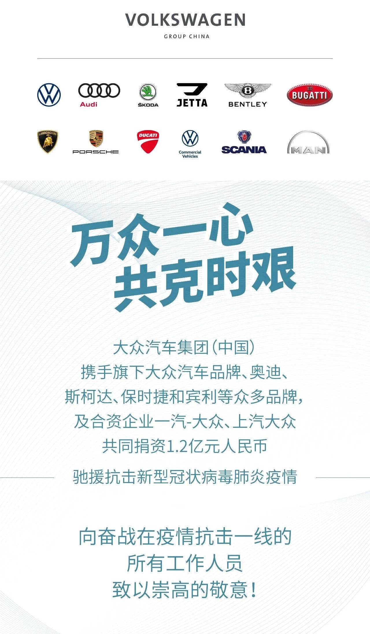 大众(中国)携合资企业共捐资1.2亿元抗击疫情