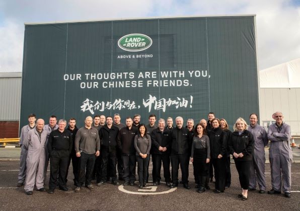 中国财富网讯 近日,众多跨国企业开展全球范围的声援行动,助力中国抗击疫情。作为一家英国豪华汽车企业,捷豹路虎中国联合奇瑞捷豹路虎在累计捐赠800万元人民币,用作抗击疫情的资金之后,捷豹路虎董事会成员、位于英国布罗米奇堡(Castle Bromwich)和哈利伍德(Halewood)的路虎工厂的员工纷纷发起声援行动,以“我们与你同在,中国加油!”字样的横幅,表达了对于中国人民的深切关怀和全力支持。