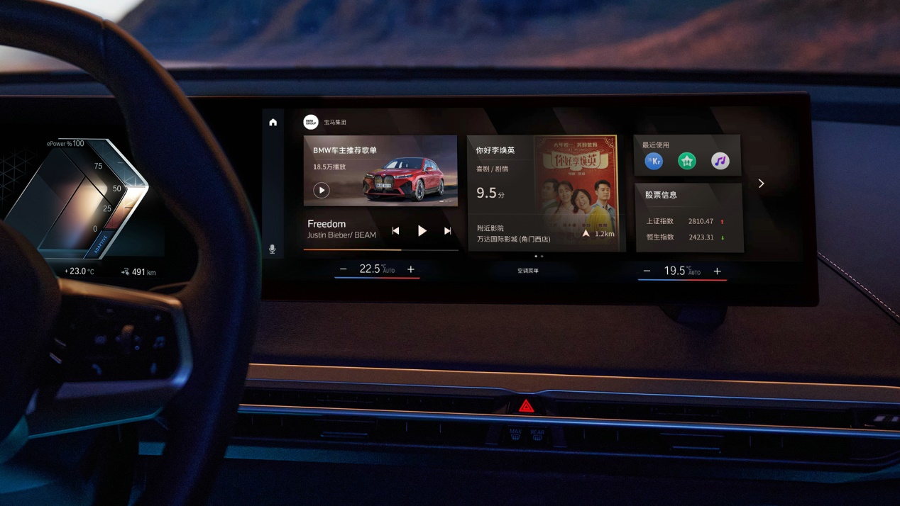 对于智能化,宝马也有自己的理解,车机并不是简单的功能堆砌,更重要的是协调统一。因此,在BMW iX上能看到很有设计感的悬浮曲面屏,以及最新的BMW iDrive 8.0。