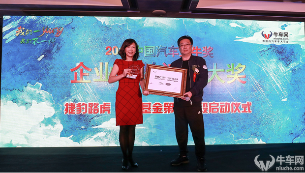 2019中国汽车金牛奖之企业公益活动大奖—捷豹路虎、捷豹路虎青少年梦想基金。