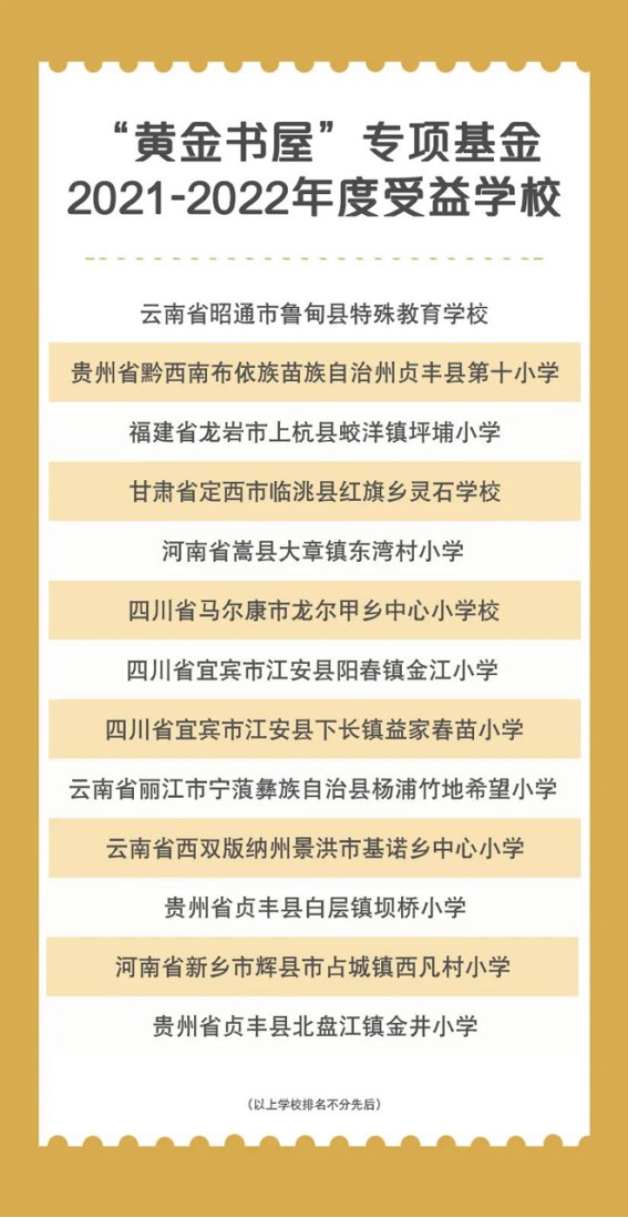 为了守护更多乡村孩子的阅读梦,2021年9月,世界黄金协会携手上海浦东新区恩派公益基金会(“恩派基金会”),发起了“上海浦东新区恩派公益基金会黄金书屋专项基金”,并积极协同社会及黄金行业内资源,多次开展图书募集活动,如今已累计筹措图书50,000余册。2021-2022年度,有云南、贵州、四川、福建、河南、甘肃等地的13所乡村学校受益,近3,000名孩子体会到了阅读的乐趣。