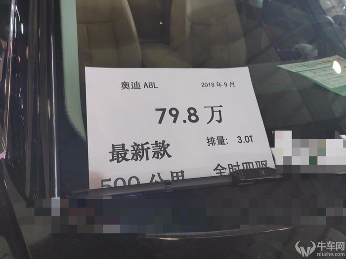 坐落在北京南四环,有个全城最大的二手车交易市场。花乡二手车市场里,出现了一批准新的奥迪A8L,最新款,售价基本都在79.8万元左右,公里数约500公里。