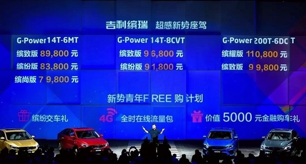 吉利汽车集团副总裁、销售公司总经理林杰宣布吉利缤瑞的价格