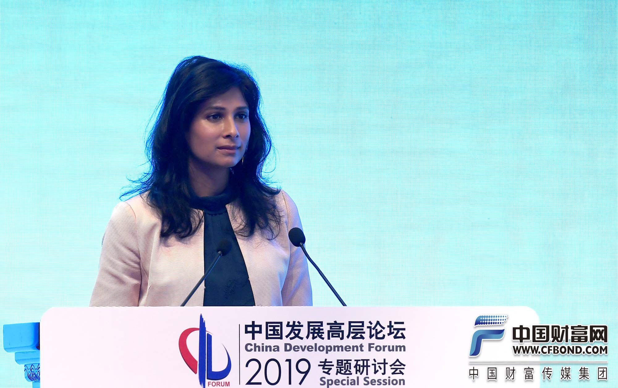 发言人:国际货币基金组织首席经济学家吉塔·戈皮纳特。中国财富网 李林 摄