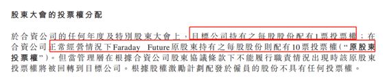 值得一提的是,恒大在当初签订的投资协议中占据强势地位,FF将采用AB股模式,贾跃亭作为创始人,所持股权1股代表10票,仍占据多数的投票权。但是,各方做了严苛的约定,若FF原股东违约或者触发某些条件,投票权将出现反转,恒大将拥有多数的投票权。据了解,触发投票权反转的条件即包括FF能否在指定期限内实现量产。
