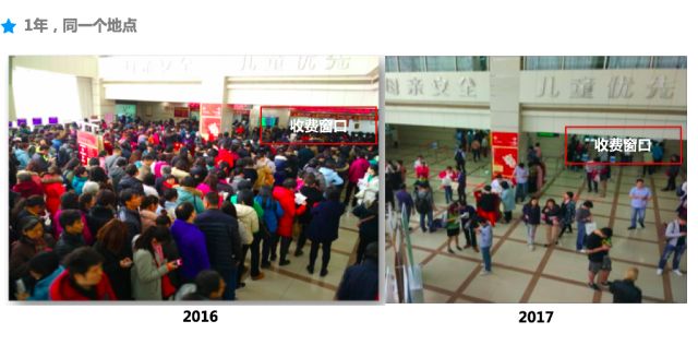 ▲两年里,上海同一机构的同一缴费窗口,人流量却大不一样。