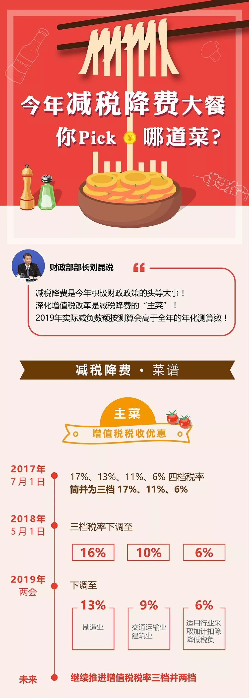 财政部部长刘昆7日在新闻发布会上表示,减税降费是今年积极财政政策头等大事,是减轻企业负担、激发市场活力的重大举措,是宏观政策支持稳增长、保就业、调结构的重大举措,具有一举多得的效果。