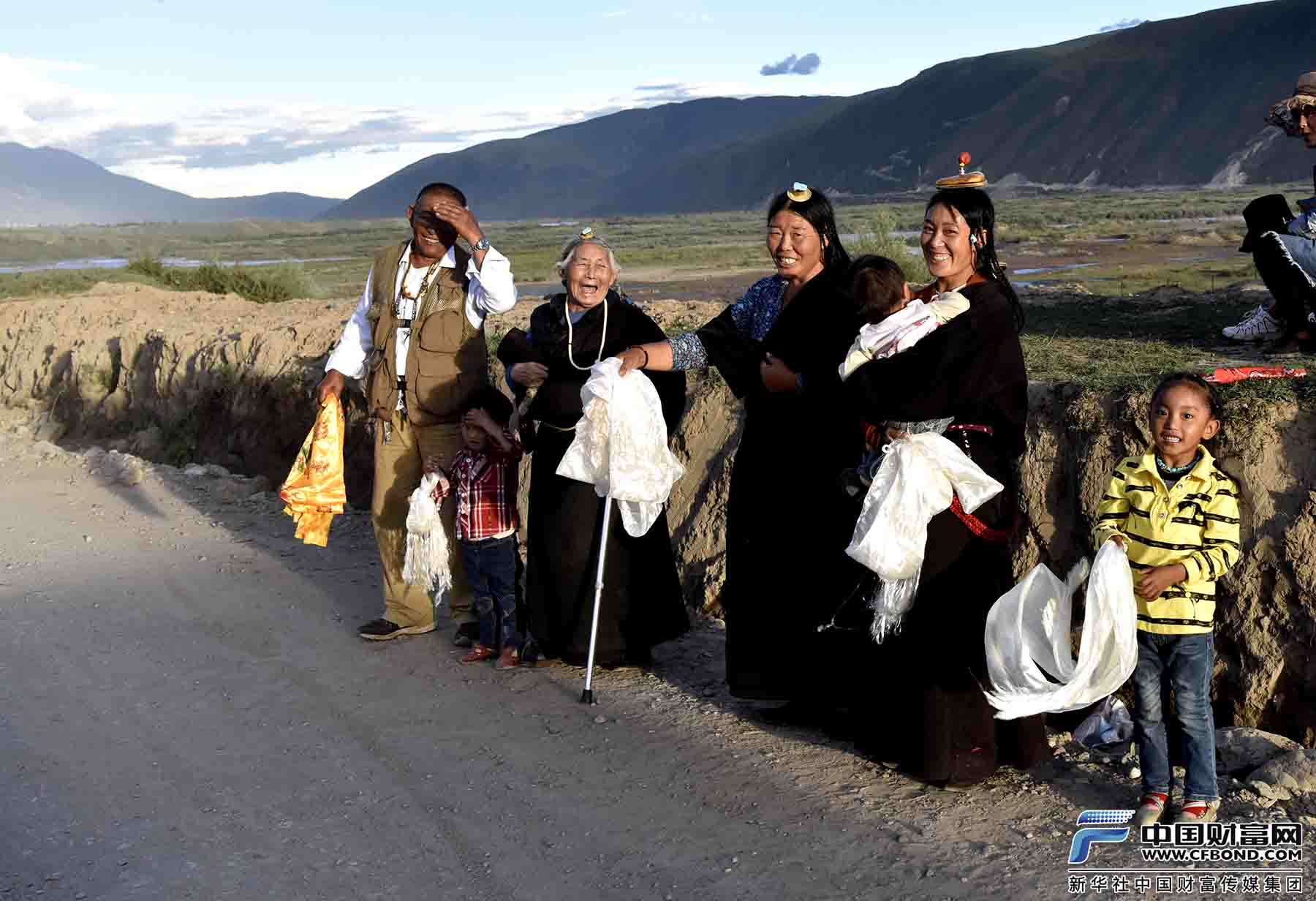 8月19日,兴动公益团队行进中,偶遇手捧哈达的藏族群众。 中国财富网 李林/摄