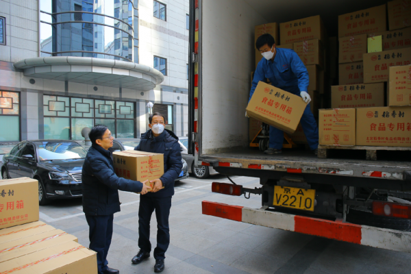 图片说明:北京稻香村向一线医护人员捐赠一万盒“京八件”糕点
