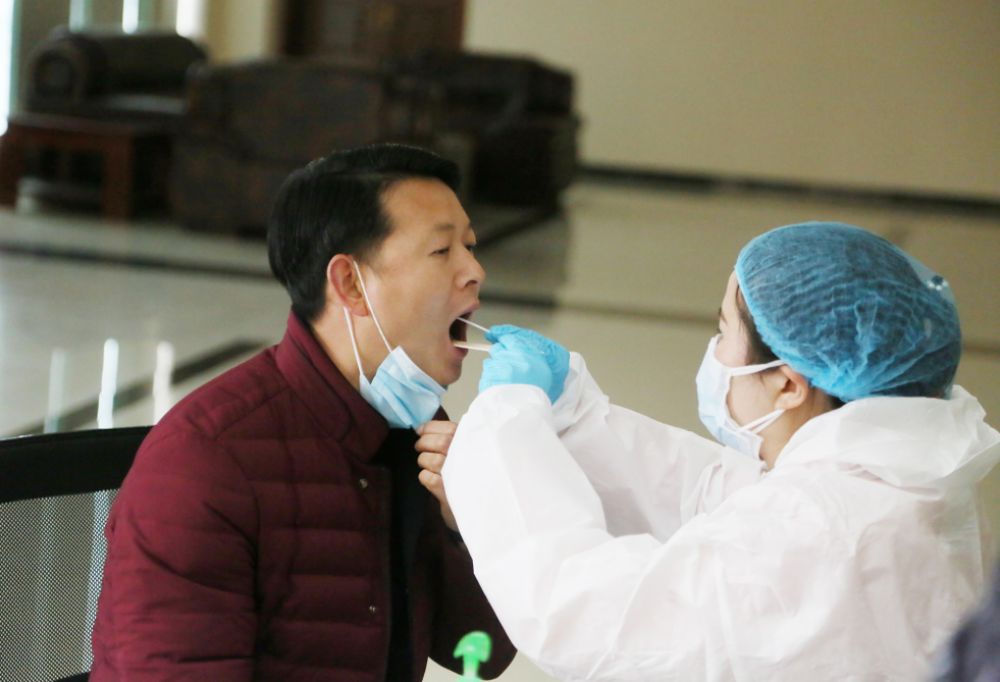酒精消毒、填表、领取专属条形码、提取咽拭子……前后不过一分钟,核酸检测就已经完成。“看到病毒传染力这么强,心中总有些担心,相信我们都没事。”尔康制药员工孙育义在检测时心中有些疑虑。
