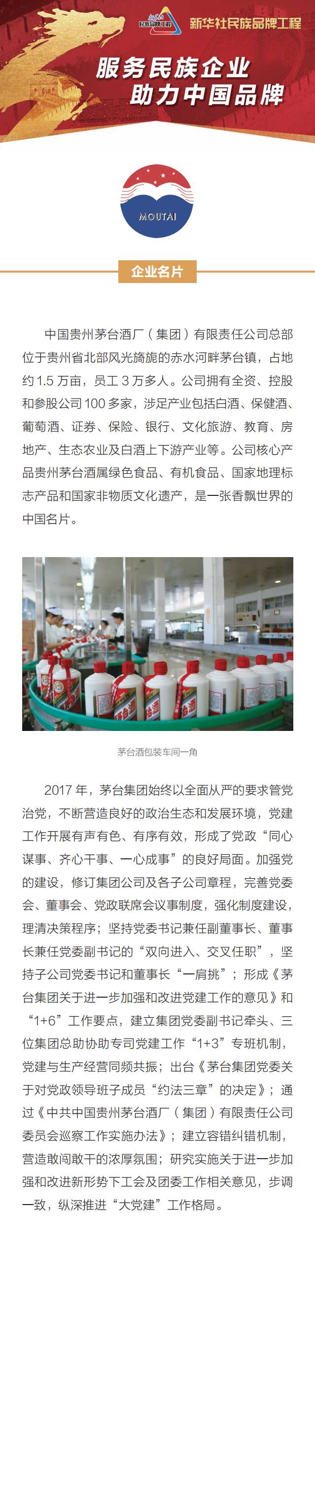 新华社民族品牌工程入选企业:贵州茅台