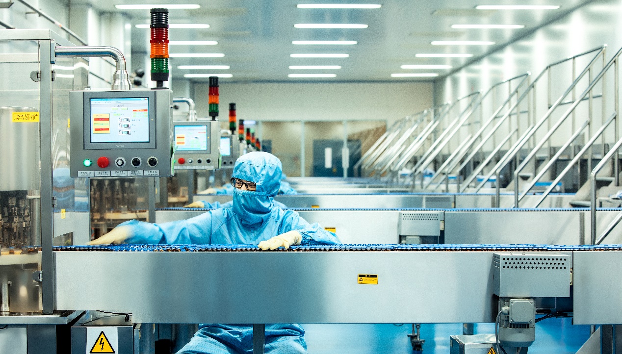 扬子江药业集团广泛引进国际先进制药设备,按照美国FDA标准打造国内顶尖、国际一流的生产质量管理体系和标准。图为口服液生产车间流水线