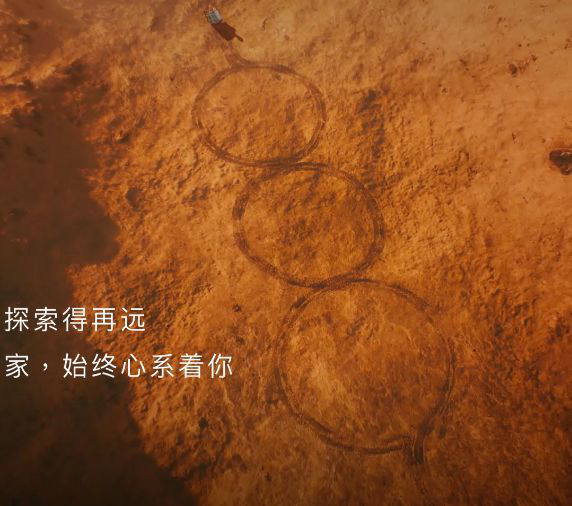 在普天同庆万家团圆之际,远离家人的探测机器人也想家了。他默默地在凹凸不平的火星地表“画”出一个糖葫芦形状,将幸福和团圆连成串,传回地球。短片结尾,探测机器人带着“妈妈”系的中国结和祝福,继续前行,探索未知。