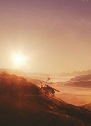 短片一开始,是在距离地球数亿公里的火星上,一个探测机器人独自游走在凹凸不平的地表,那里环境恶劣,空旷广袤,没有生命迹象,一片死寂荒凉。探测机器人拥有一身金属构造的坚硬躯壳和一双酷似望眼镜的大眼,不由地让人联想起电影《机器人总动员》中的瓦力。