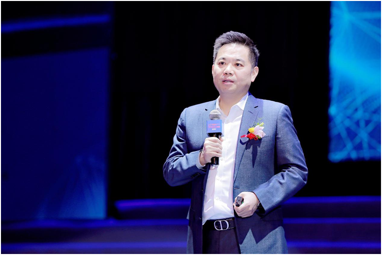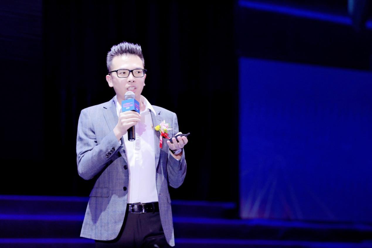 图为1919创始人、董事长杨陵江在发布会上分享企业发展经验